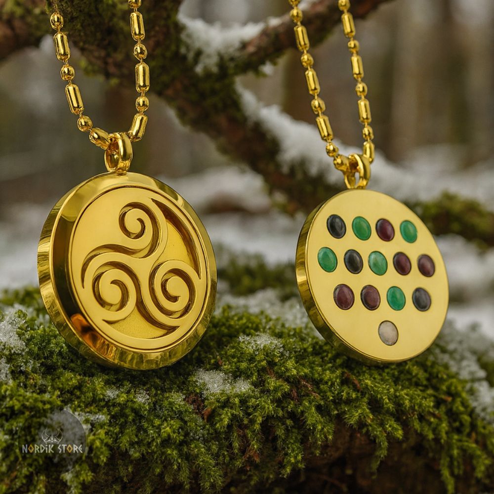 Les motifs celtiques et les traditions vikings se combinent pour créer des colliers uniques. Ils racontent une histoire riche et partagée. Les entrelacs celtiques, complexes et symbolisant l’infini et l’éternité, complètent les motifs nordiques. Ces colliers forment un pont entre les cultures celtique et viking. Ils célèbrent l’union de ces deux héritages historiques puissants.