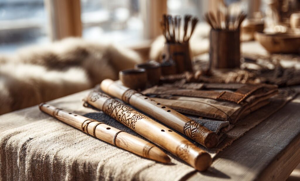 Après les voix, viennent les objets. Les instruments retrouvés par les archéologues complètent le tableau sonore des Vikings. Certains sont simples, taillés dans l’os ou le bois. D’autres sont plus élaborés, sculptés avec soin. Tous racontent un monde où la musique accompagne le quotidien, la guerre, les fêtes et les rituels.