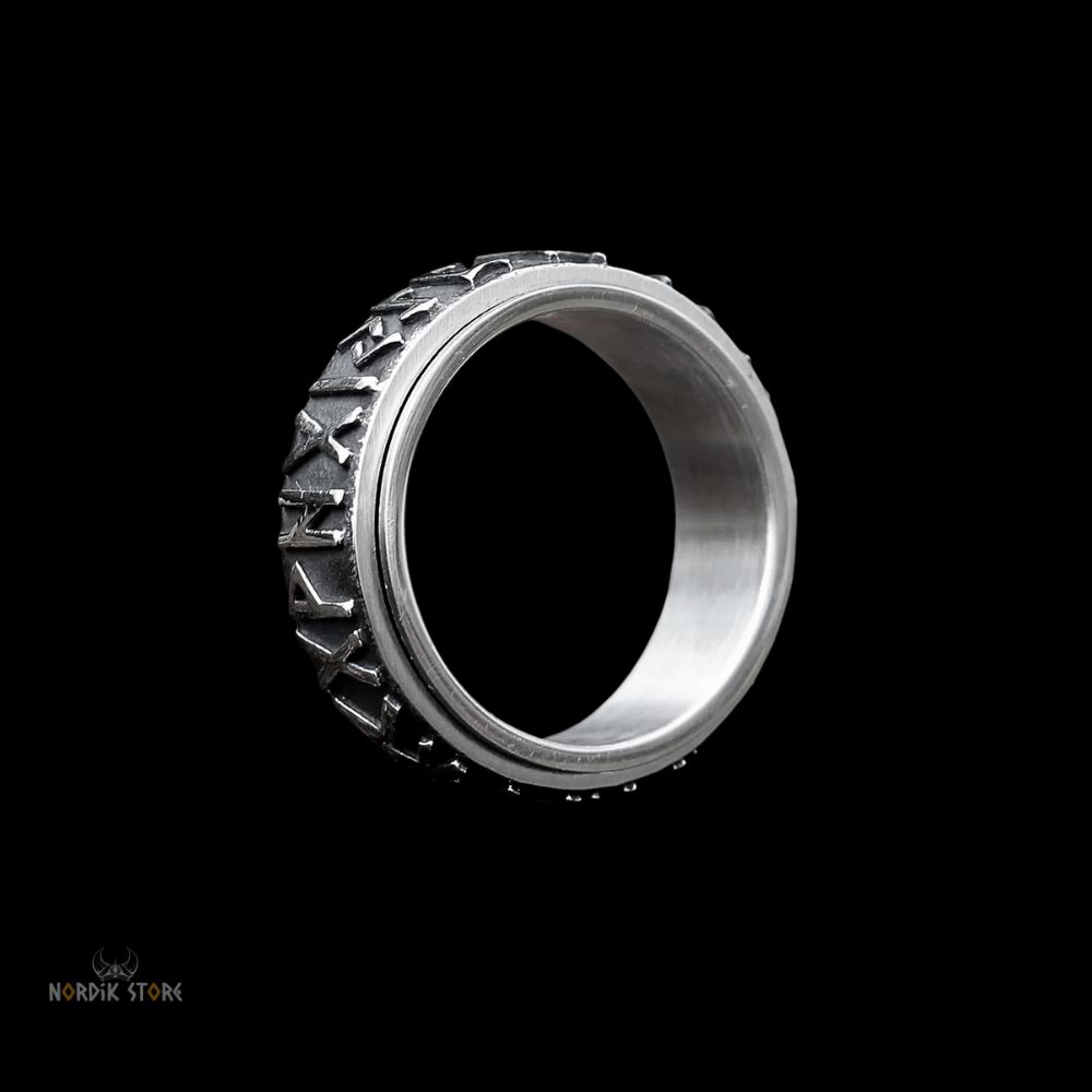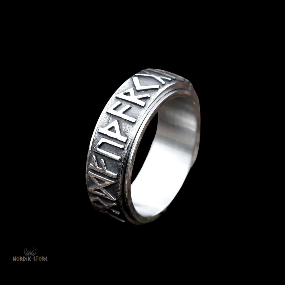 Transcendez le temps, fusionnez avec la mythologie : laissez-vous séduire par l’anneau Viking orné des runes divines sacrées.