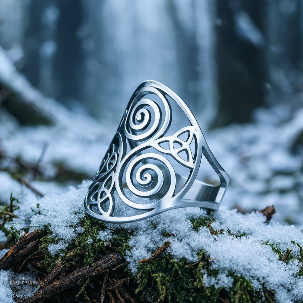 Fabriquée en acier inoxydable, cette bague est disponible en couleur or ou argent et est idéale pour les femmes qui cherchent à exprimer leur amour pour la culture Celtique et Viking.