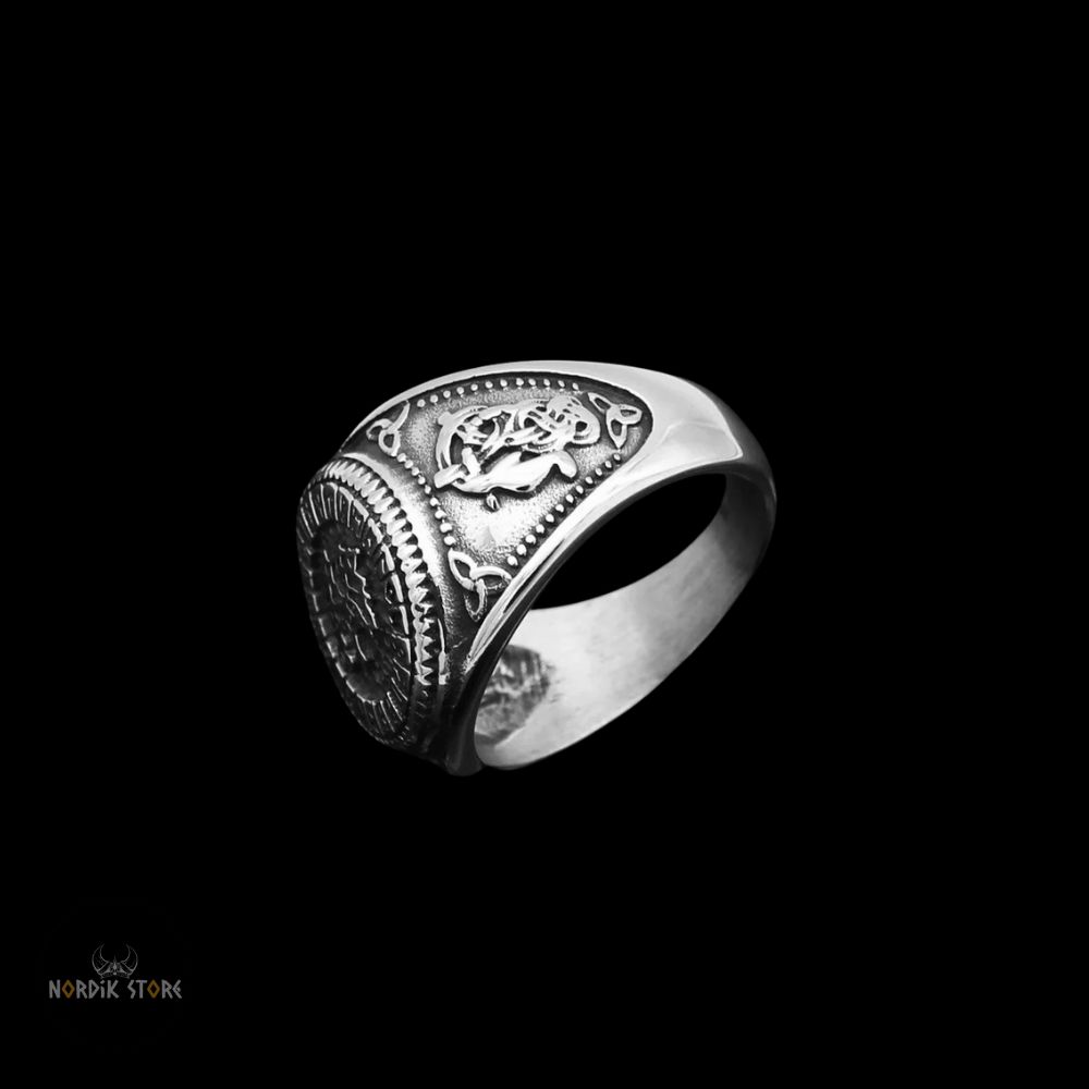 Ravivez votre esprit sauvage avec la bague viking esprit des loups : un lien tangible avec l’âme indomptée des loups, sculpté dans une chevalière majestueuse.
