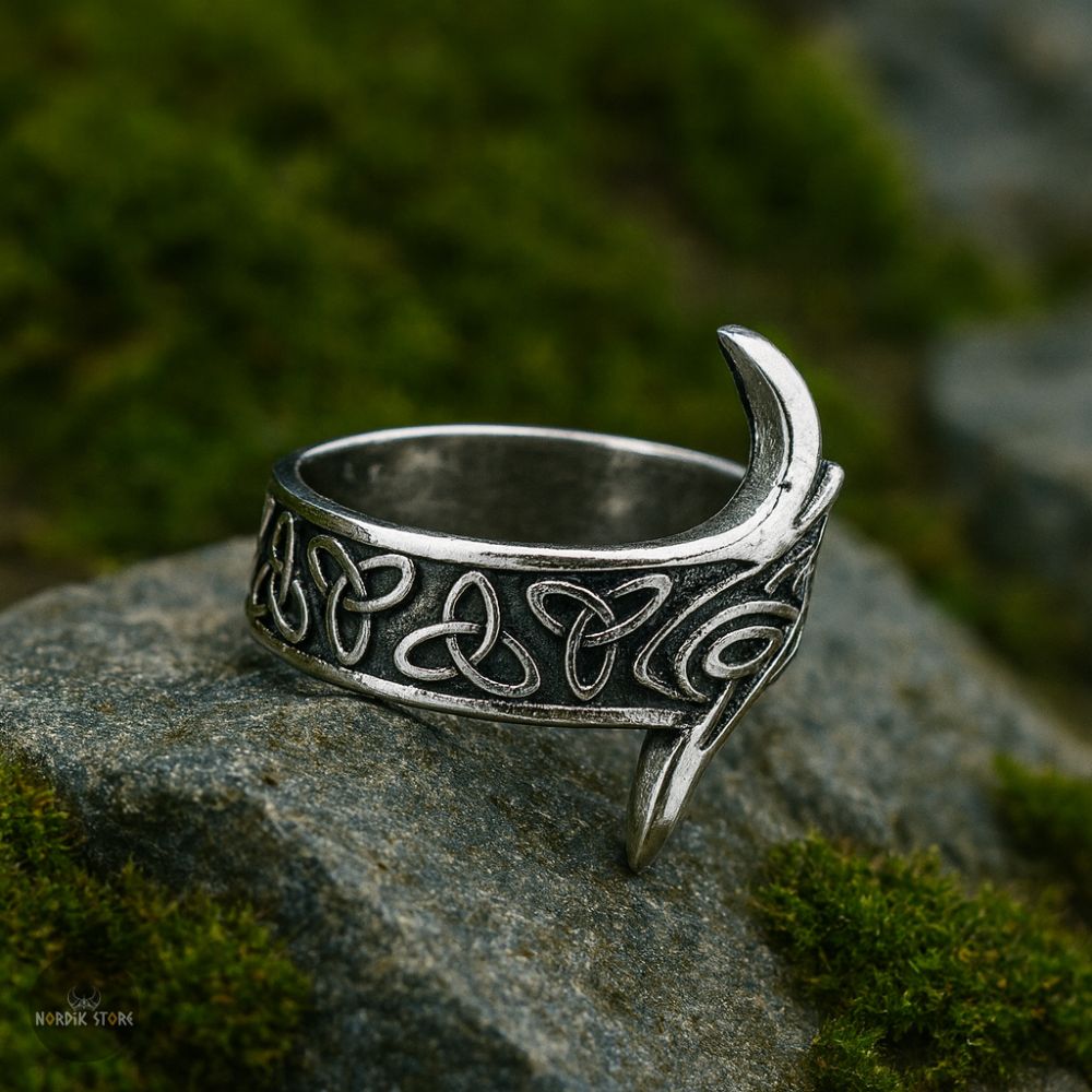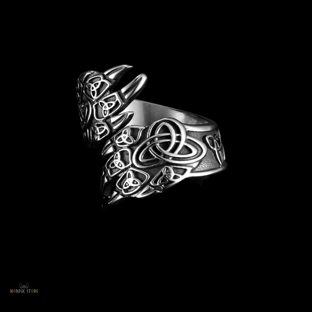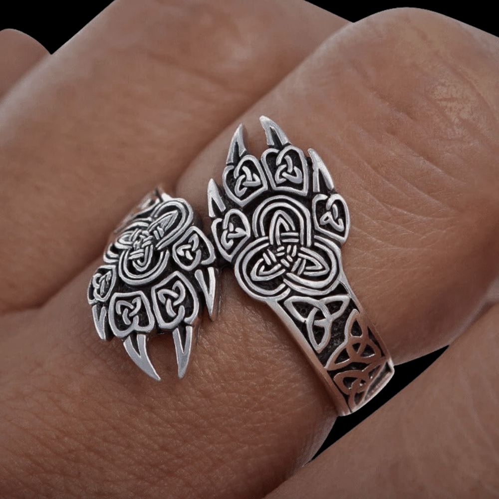 Incrustées dans un métal résistant, les griffes d'ours polaire dégagent une aura de force brute et de résilience. Les nœuds celtiques finement gravés évoquent une connexion profonde avec les forces de la nature, rendant chaque bague une véritable œuvre d'art.