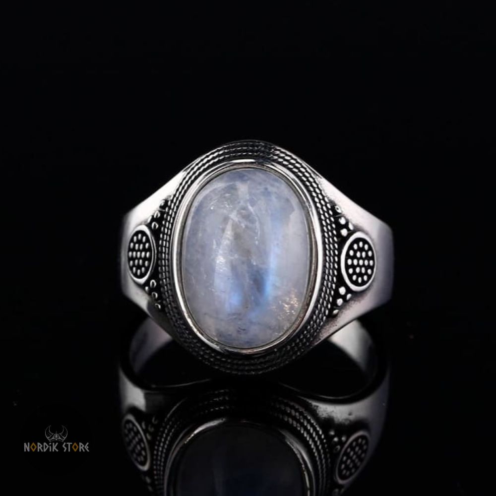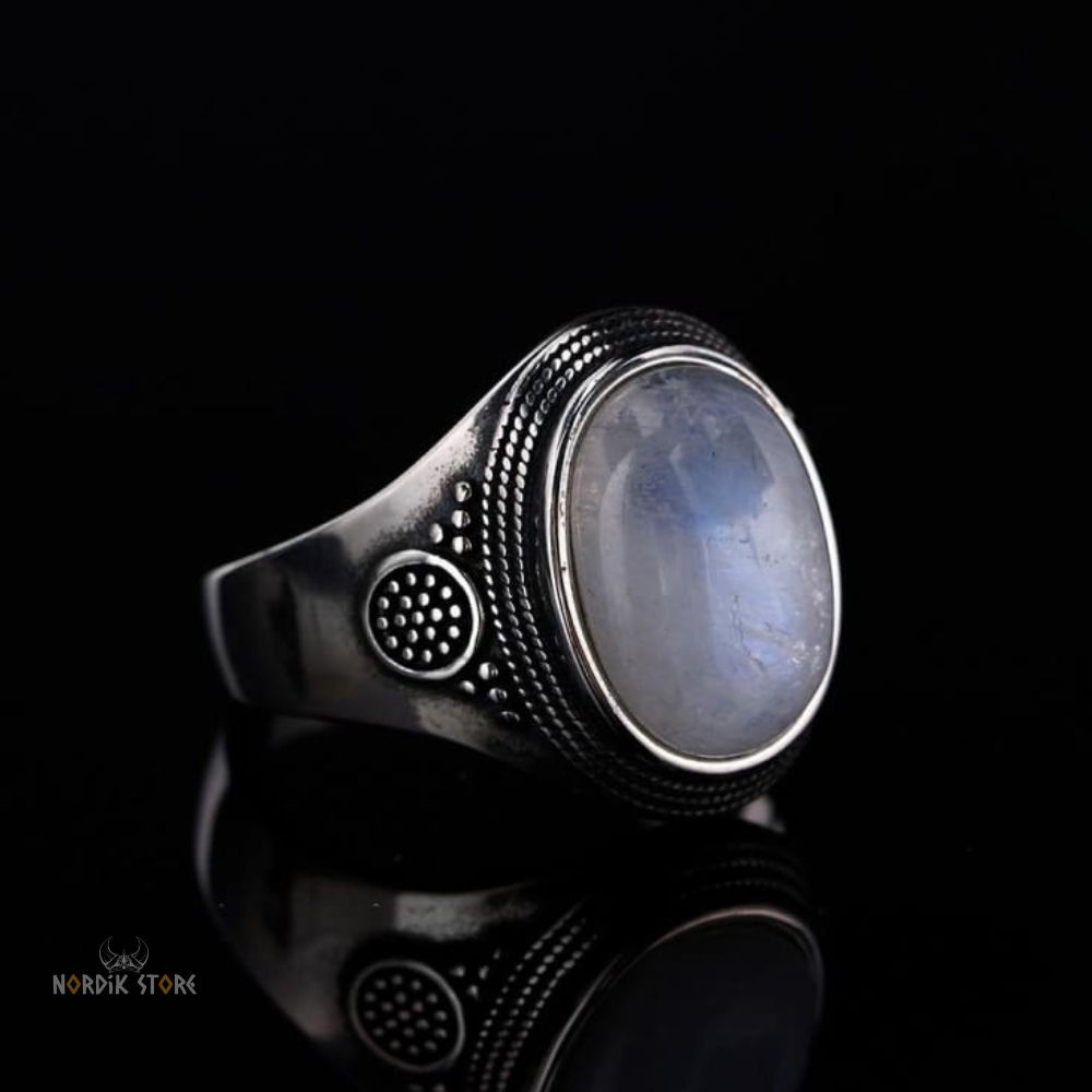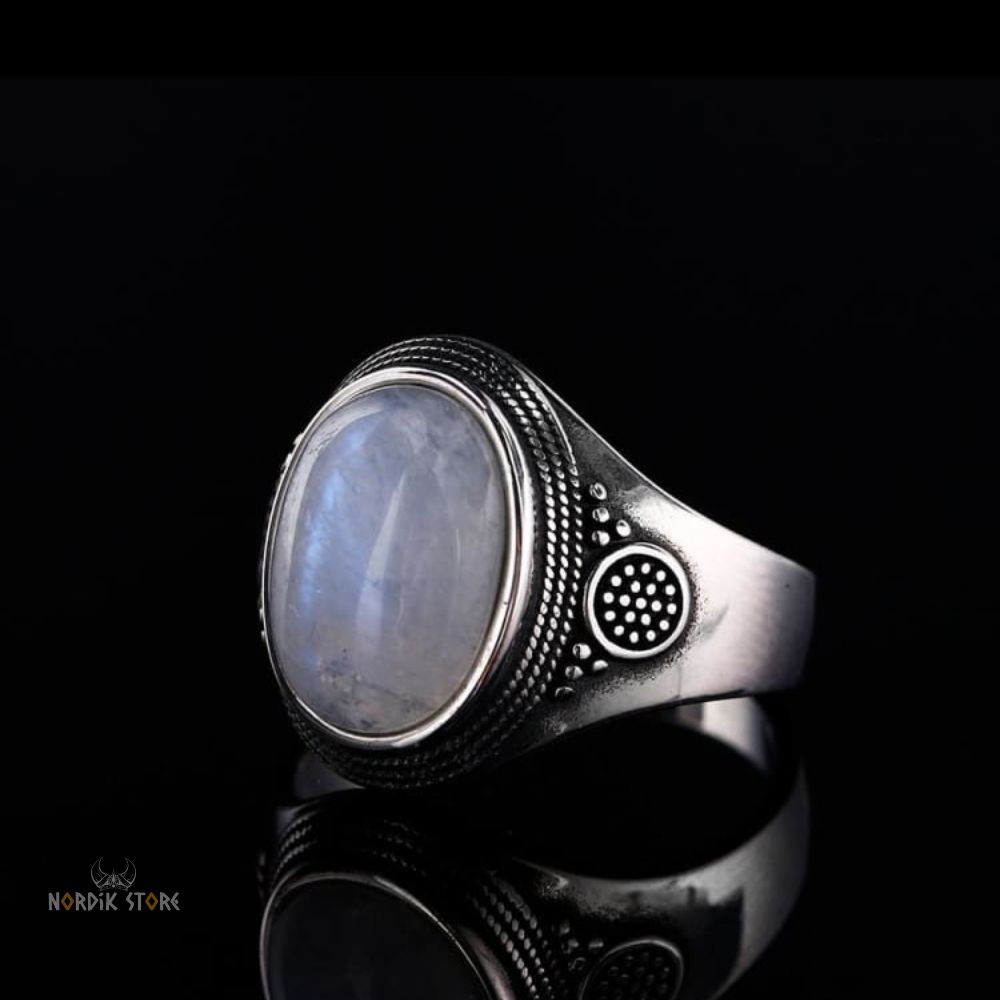Cette bague viking offre une présence unique. Sa pierre semble changer selon l’humeur du ciel. Grâce à cet effet,