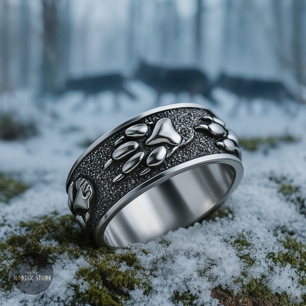 Découvrez l'authentique et puissante bague viking pattes de Fenrir