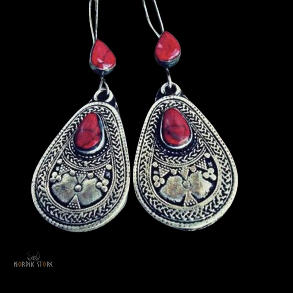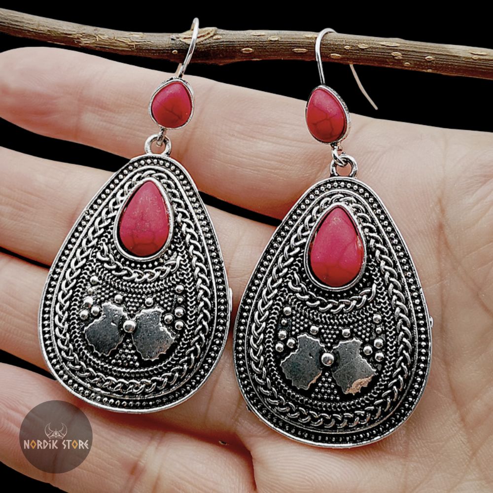 - Deux pierres naturelles rouges, évoquant le courage et la passion des femmes celtiques.