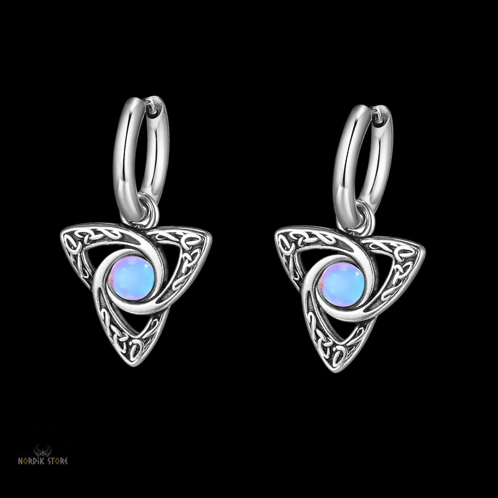 - Pierre : Chaque boucle d'oreille est incrustée d'une magnifique pierre opale naturelle. Cette pierre opalescente présente un éclat bleu céleste. Elle rappelle les reflets des mers nordiques.