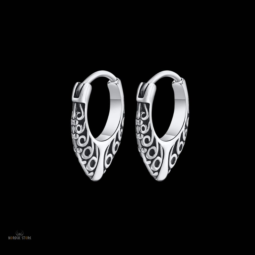 Ces boucles d’oreilles vikings ne se contentent pas de briller : elles respirent. Leur éclat argenté capture la lumière des aurores boréales et leur forme évoque le mouvement du vent sur les fjords. Chaque paire devient un talisman, un fragment du souffle divin de Skadi. Par leur finesse, elles séduisent celles qui refusent le conformisme et choisissent la liberté du froid.