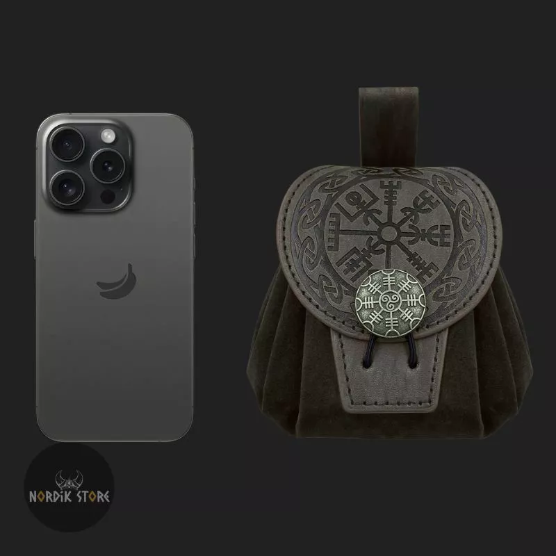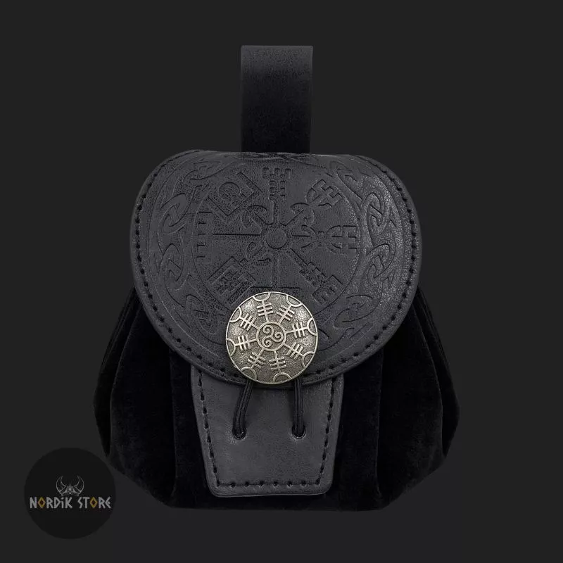 La bourse viking Vegvísir des Anciens est conçue en similicuir haut de gamme, offrant une alternative écoresponsable au cuir traditionnel. Elle est disponible en noir ou marron, afin de s’adapter à tous les styles. Grâce à son format compact de 12 × 8 × 5 cm, elle se transporte facilement.