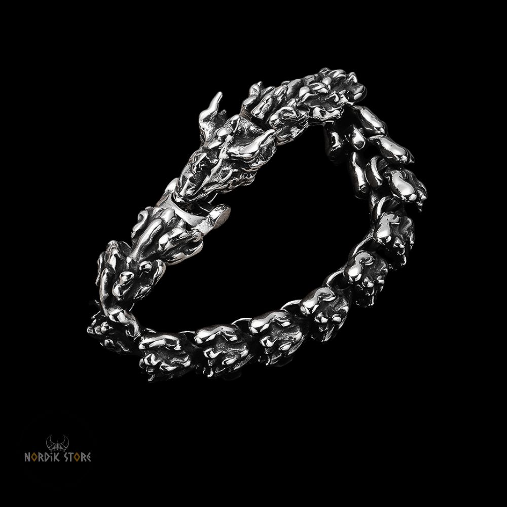 Embarquez pour un voyage intemporel, découvrez la force du dragon de Midgard à votre poignet avec notre bracelet viking unique.