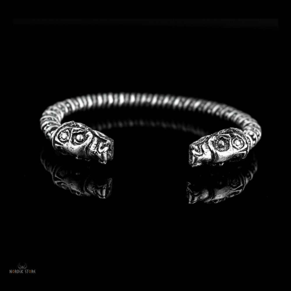 Le bracelet Freki et Geri est un bijou qui représente Freki et Geri, les deux loups fidèles d'Odin, le dieu suprême de la mythologie nordique.