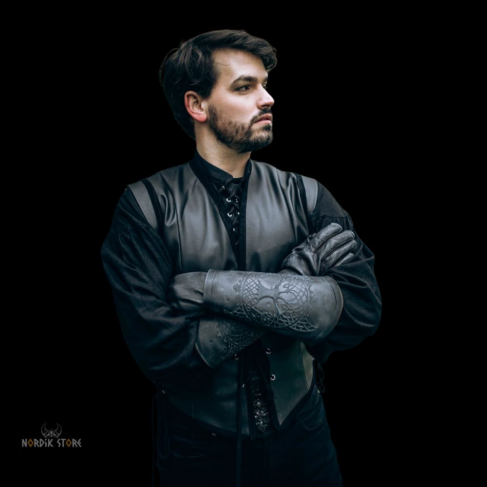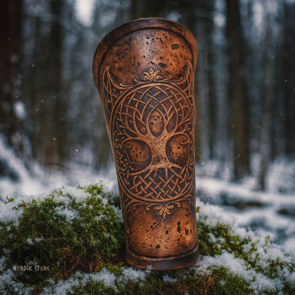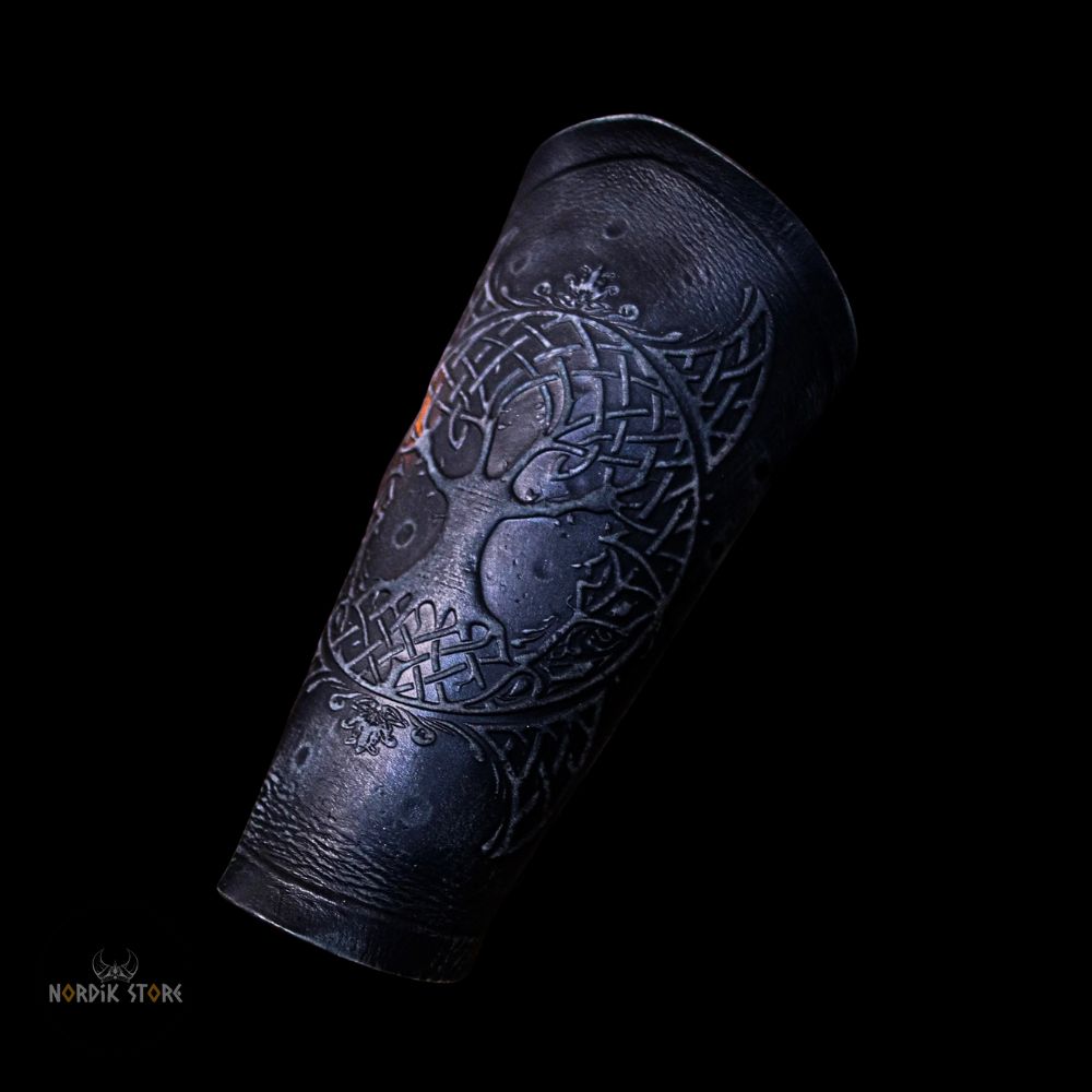 Ce brassard peut être porté lors d’un GN. Il protège efficacement l’avant-bras lors du tir à l’arc. Le cuir reste confortable. Les bords sont polis pour éviter les frottements. Les gravures renforcent le style viking. Elles attirent le regard. L’Arbre du Monde donne une profondeur symbolique. La pièce se marie avec une armure en cuir, un costume elfique, celtique ou barbare.