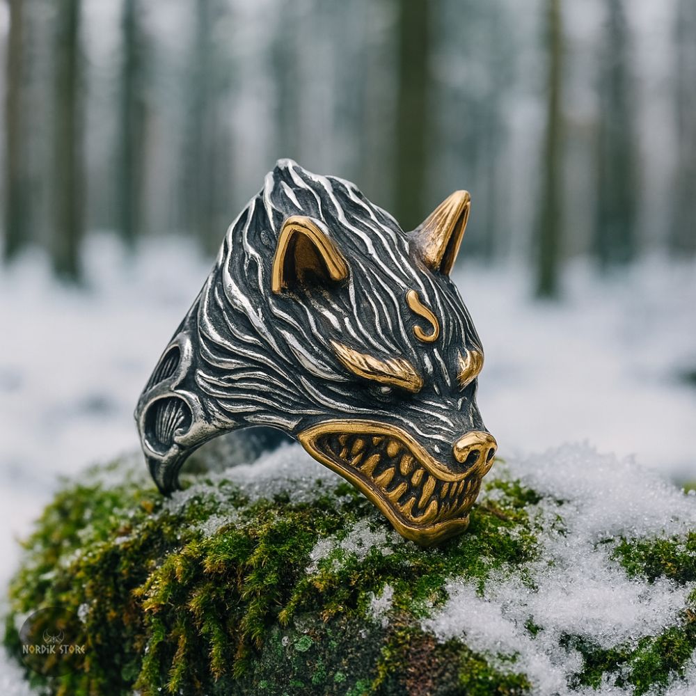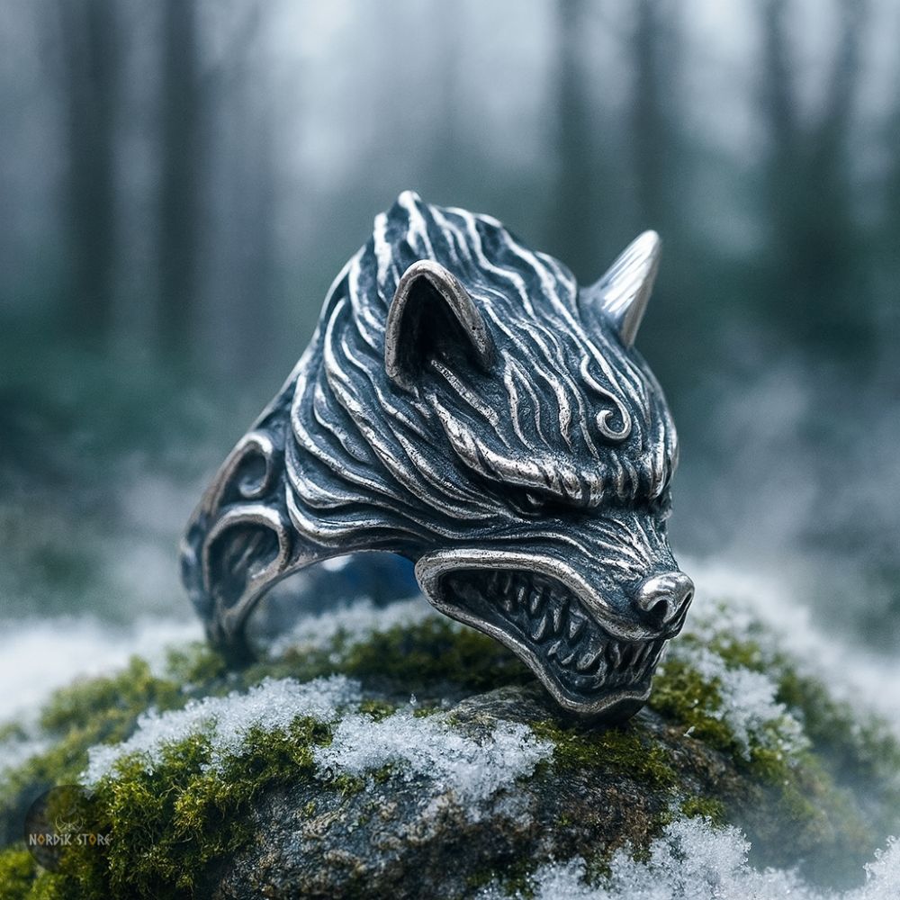 Imaginez... Une nuit sans lune, le vent hurle entre les sapins gelés. Au cœur de la forêt, une ombre gigantesque se dresse : Fenrir, le loup maudit, fils de Loki, celui dont les crocs déchirèrent les chaînes des dieux. Sa rage forgea des tempêtes et son nom, la peur même du Ragnarök. Dans cette chevalière bat encore son cœur indompté. Gravée dans l’acier et nourrie de mythes, la chevalière viking Fenrir Fléau des Dieux n’est pas un bijou — c’est la morsure du destin, le cri de la liberté gravé dans le métal.