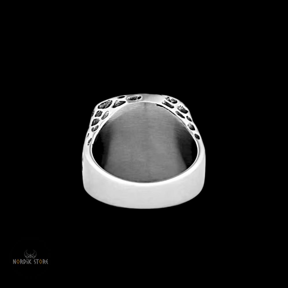 La texture rugueuse de la bague rappelle les armes de guerre utilisées par les vikings, tandis que son design unique fait ressortir l'élégance de cet accessoire.