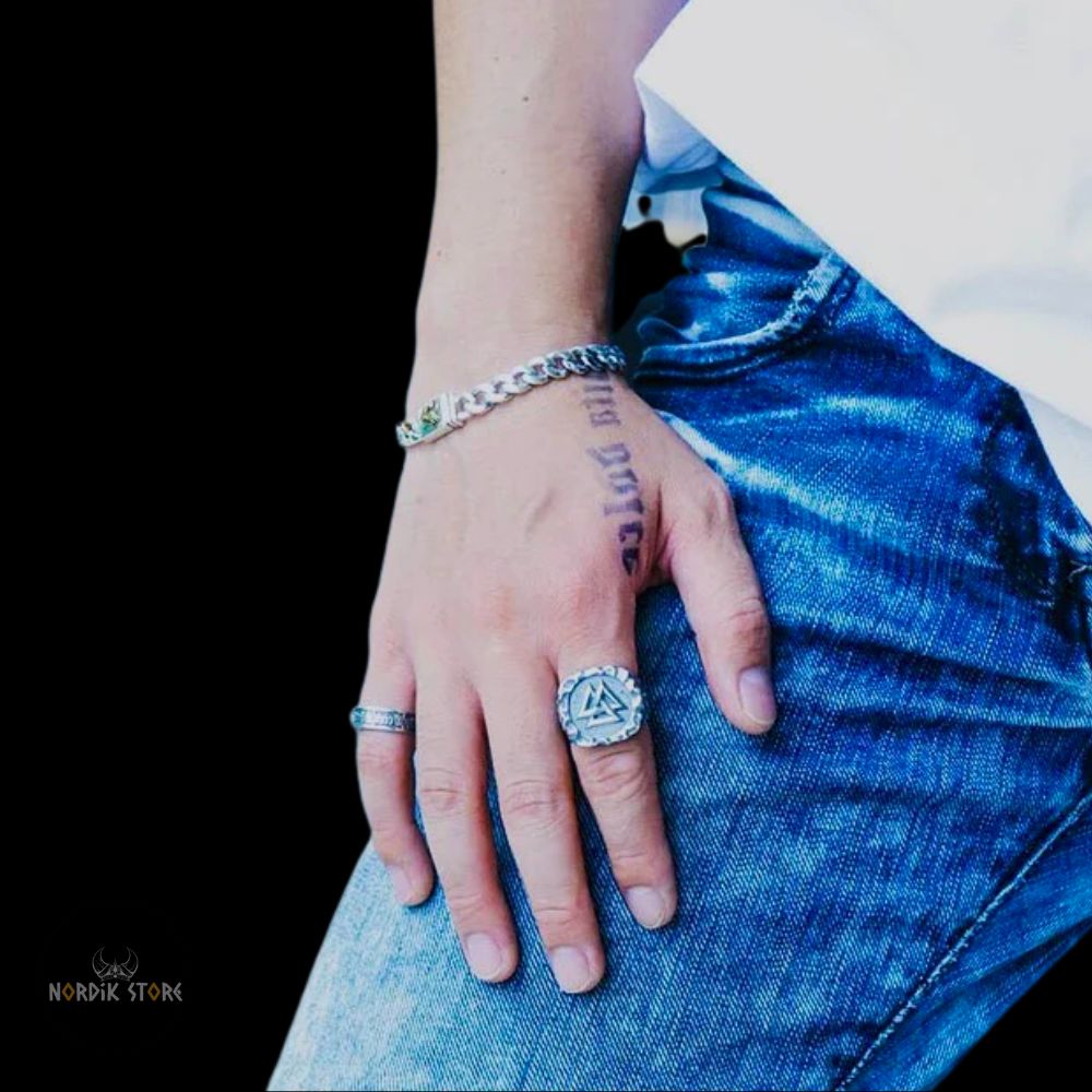 Le symbolisme profond de la chevalière viking Valknut poinçonnée