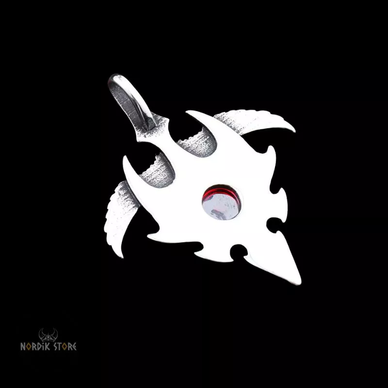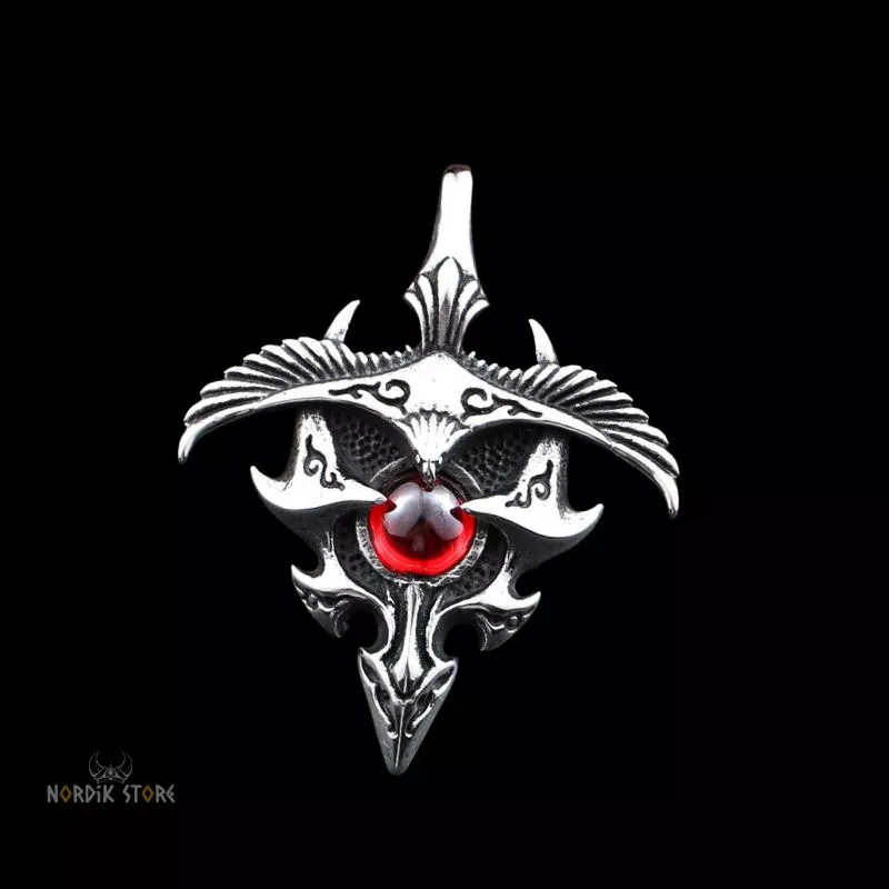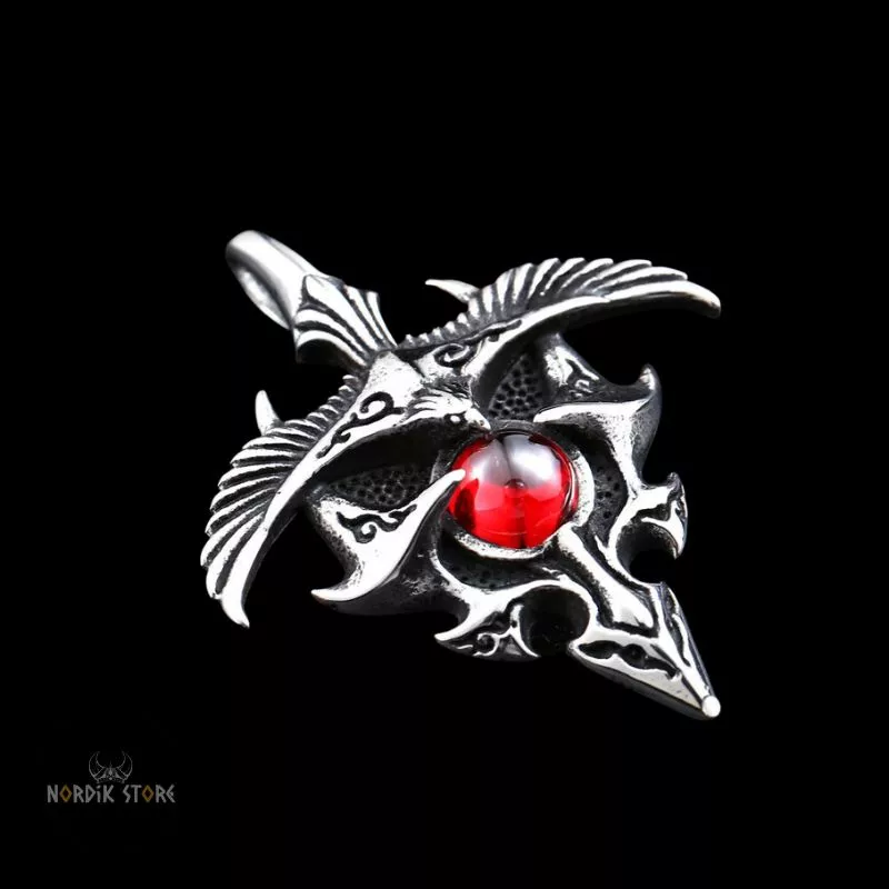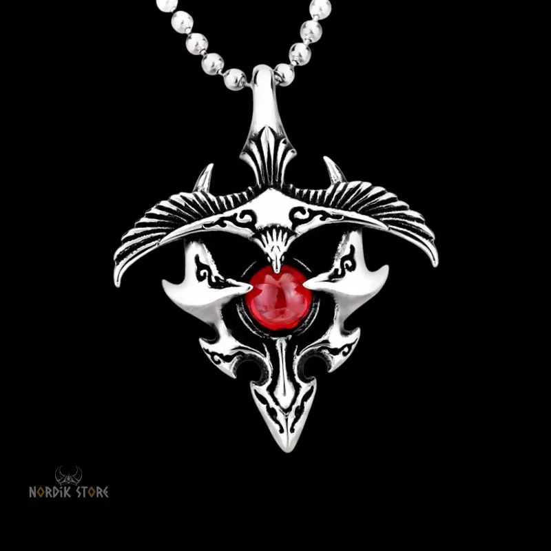 Explorez l'authenticité du passé nordique avec notre magnifique collier viking l'aigle Hraesvelg. Incarnant les mythes et légendes ancestrales, cette pièce somptueuse, en acier inoxydable, avec une pierre rubis en son centre, vous transporte dans l'univers magique des sagas vikings.