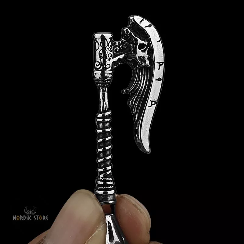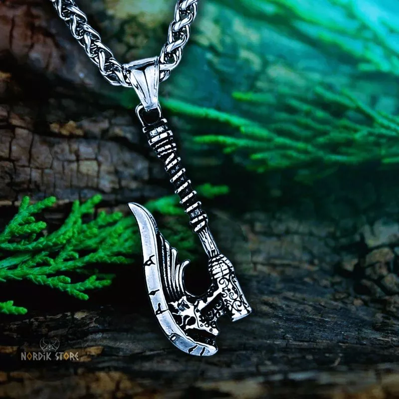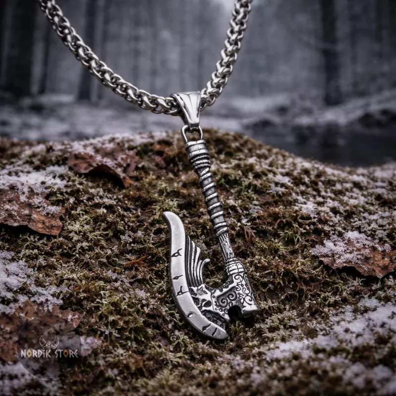 Portez la mémoire des guerriers du Nord avec le collier viking Hache Runique. Chaque rune gravée murmure courage, loyauté et destin forgé au feu.