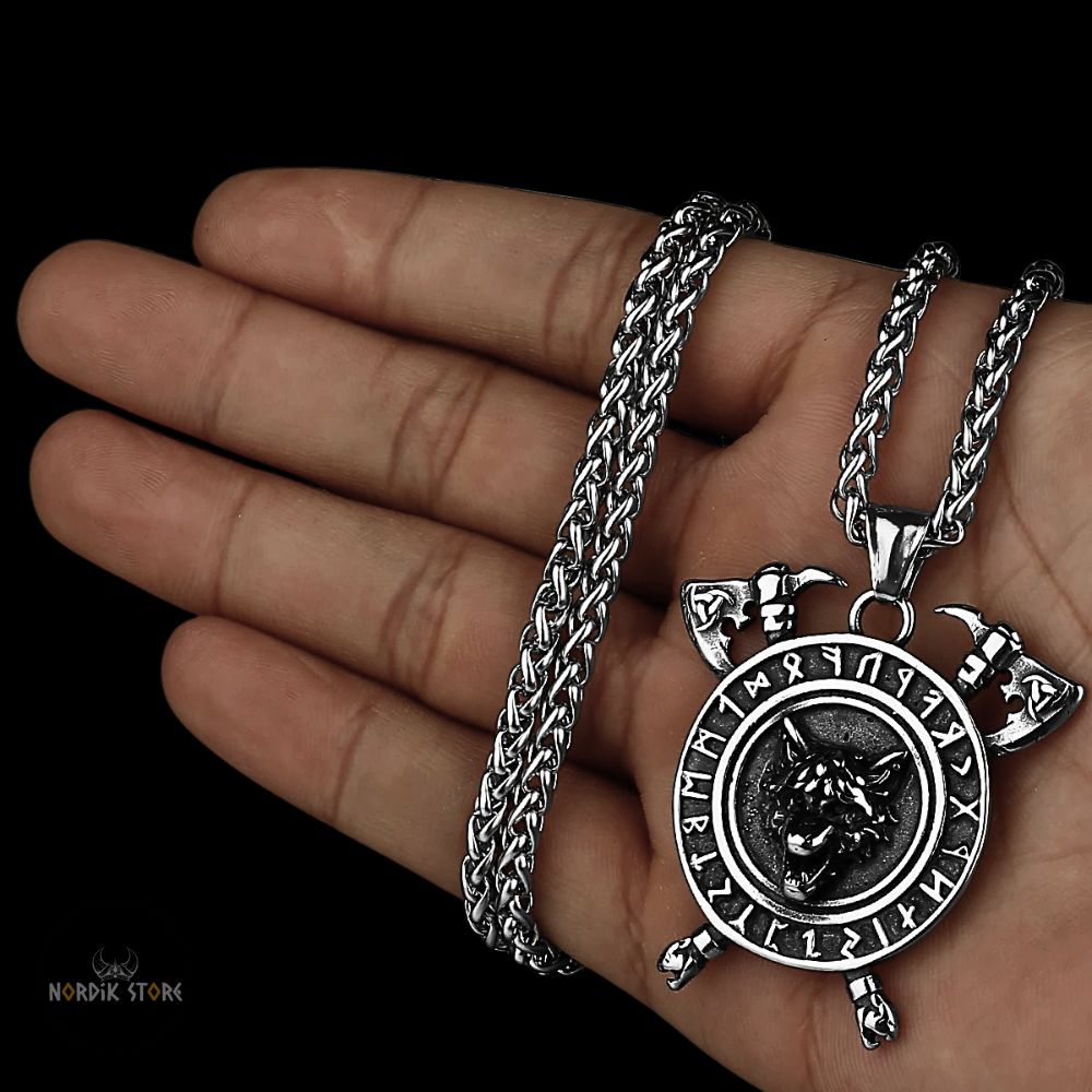 Entrez dans l'univers mystique des guerriers scandinaves avec le collier viking les haches de Fenrir. Laissez le pouvoir du loup et la sagesse des runes vous accompagner dans votre quotidien.