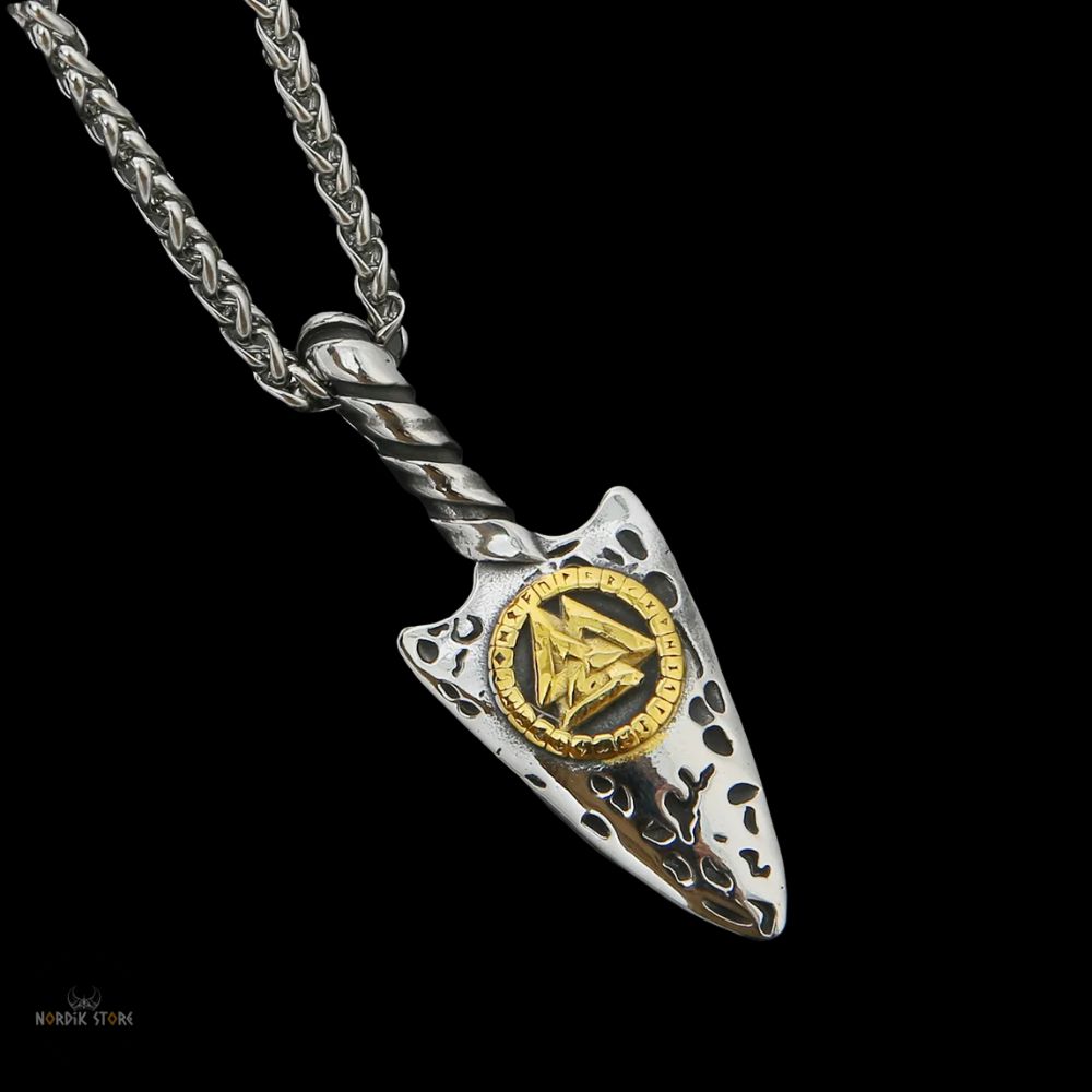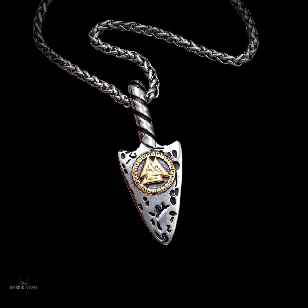 Faites Résonner l’Héritage Nordique : Le collier viking Lance Valknut capture l’esprit d’Odin : courage, sacrifice et immortalité dans un pendentif forgé pour les braves.