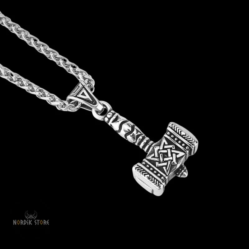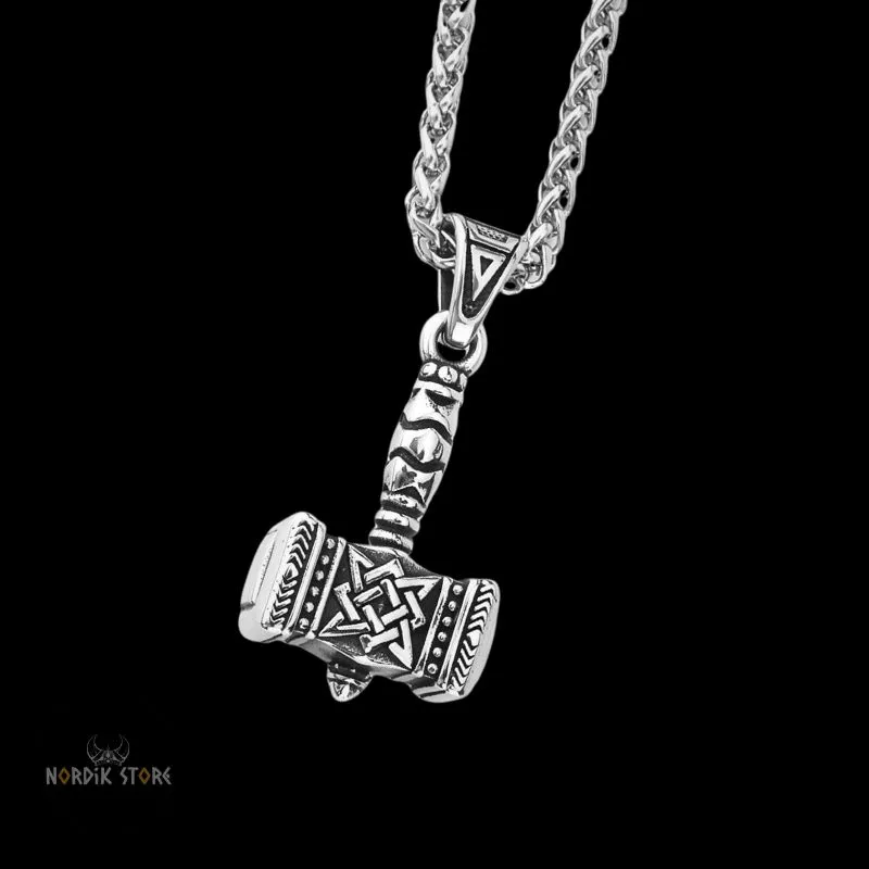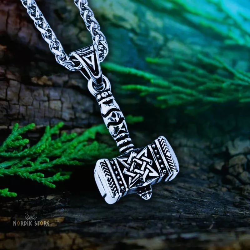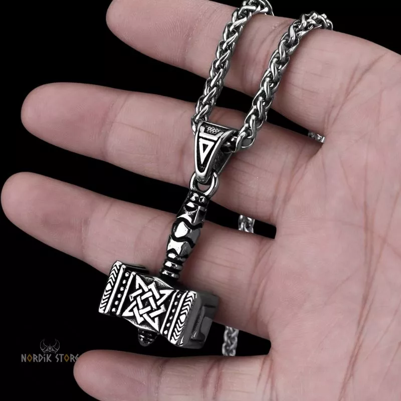 - Motif : marteau de Mjöllnir, noeuds celtiques.
