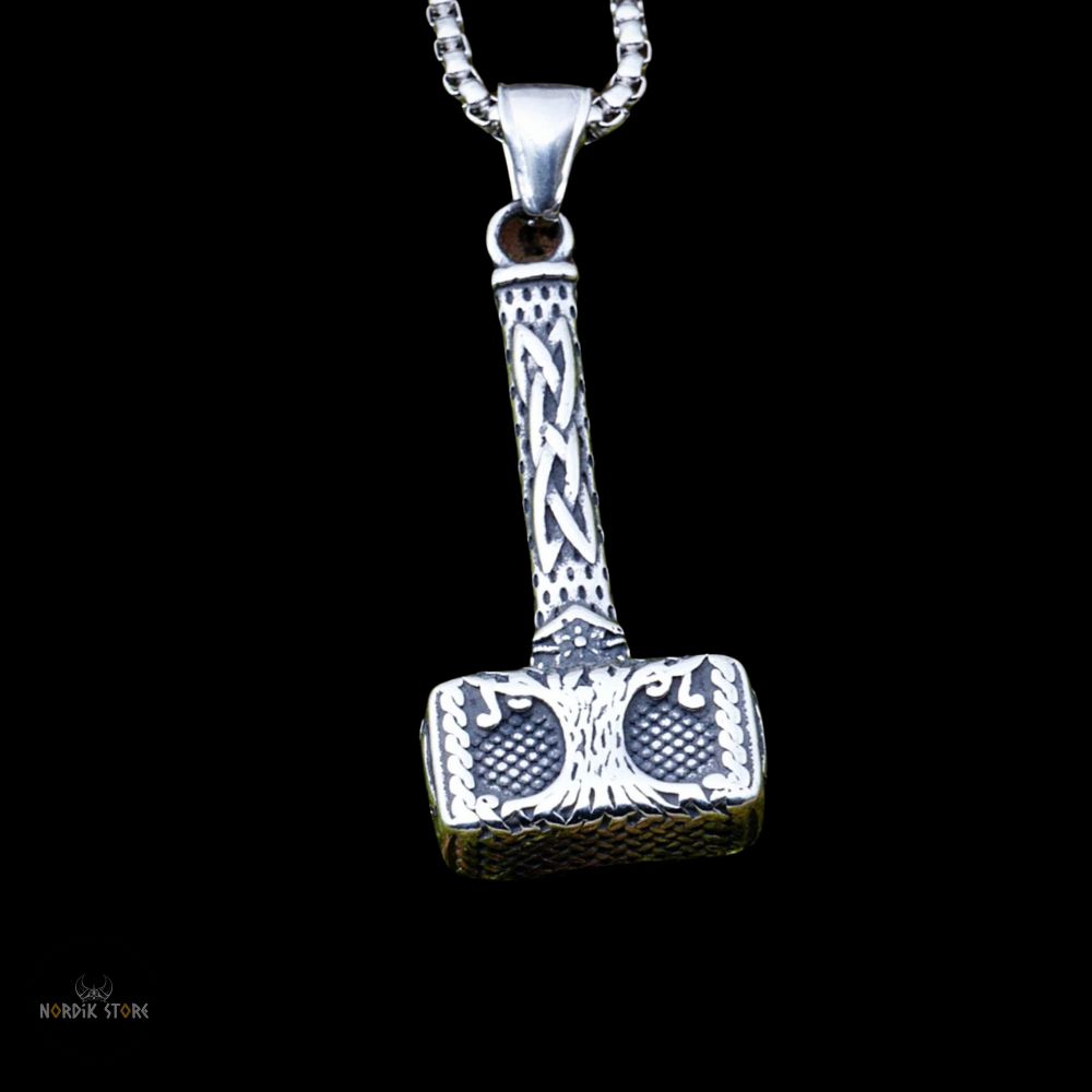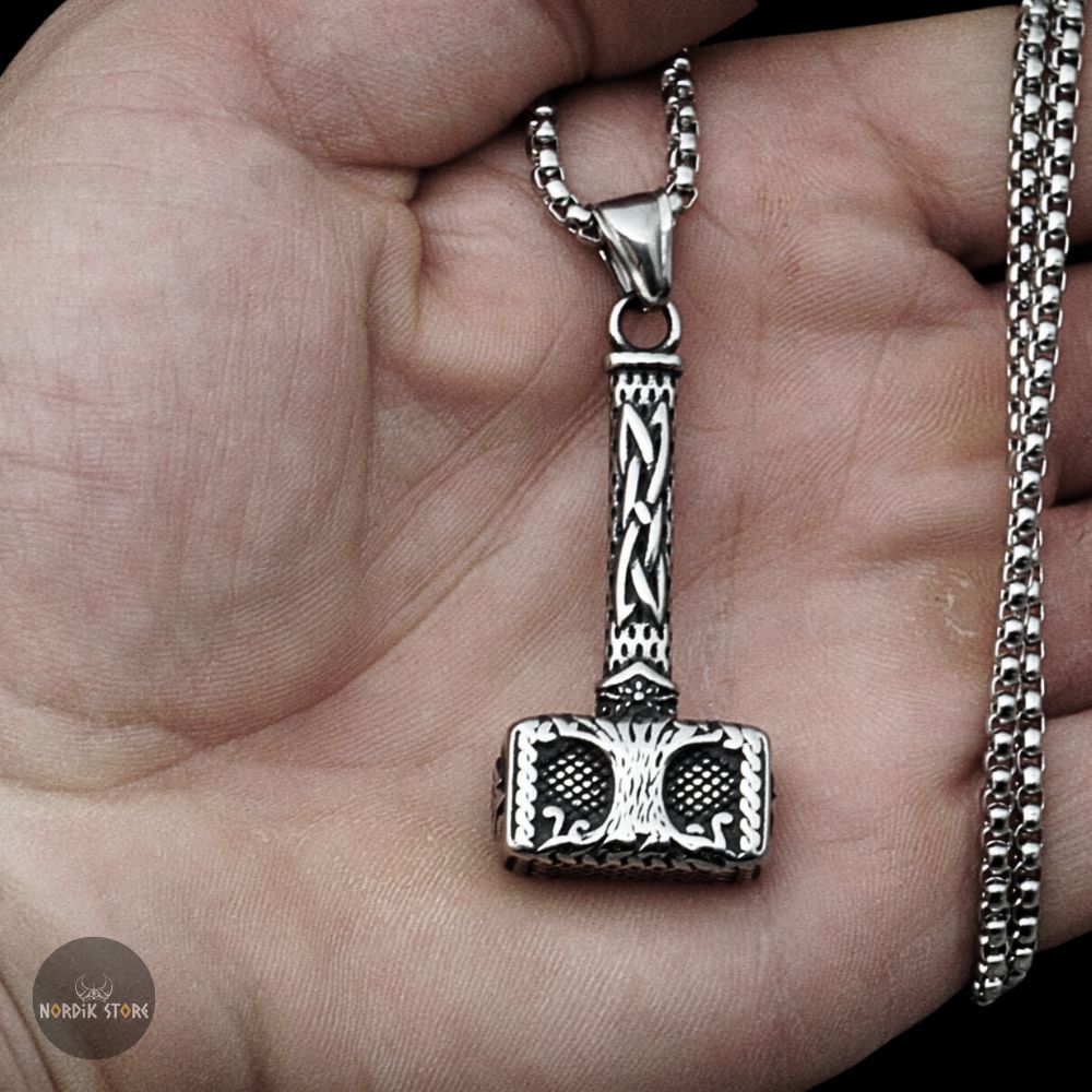 Ce collier viking Yggdrasil marteau forgé est une pièce de collection unique, un bijou qui allie la force du marteau de Thor à la sagesse de l'Arbre de Vie Yggdrasil.
