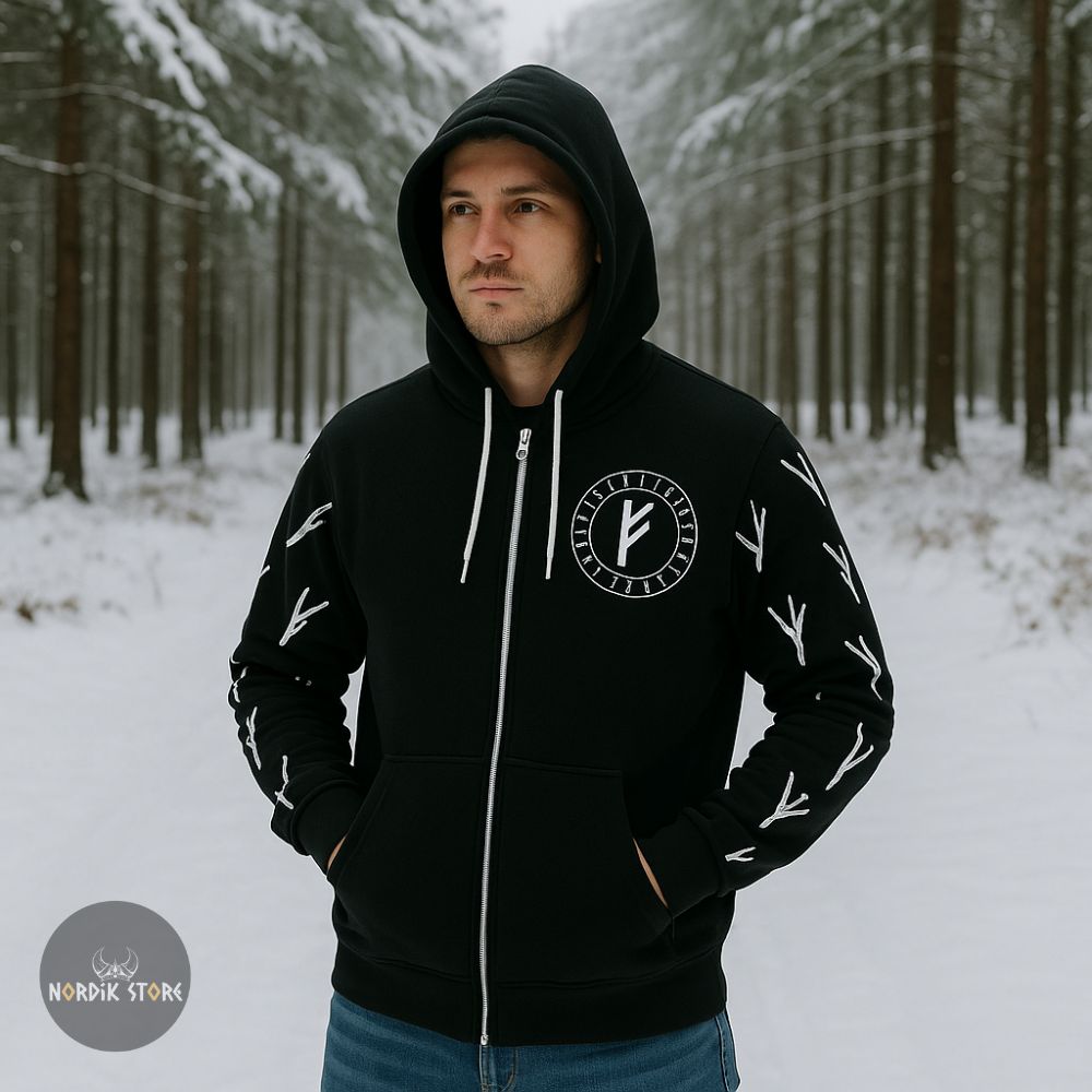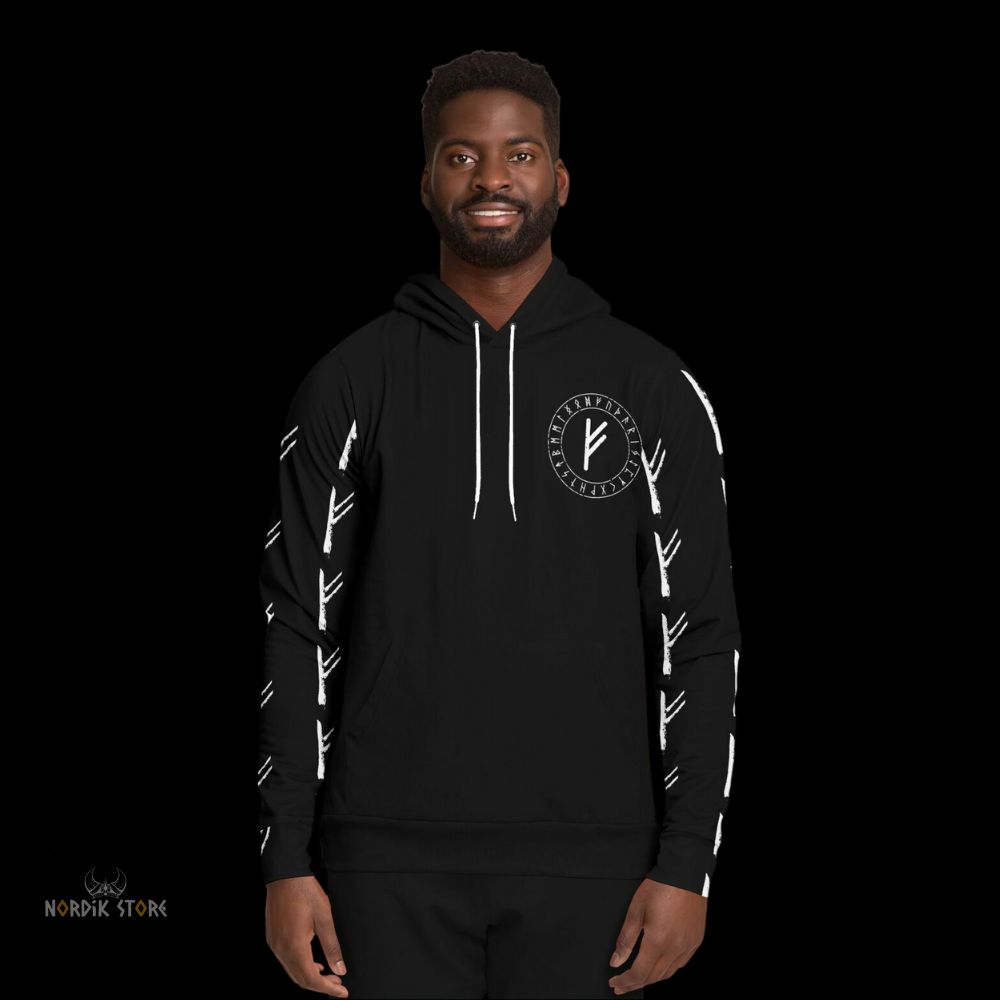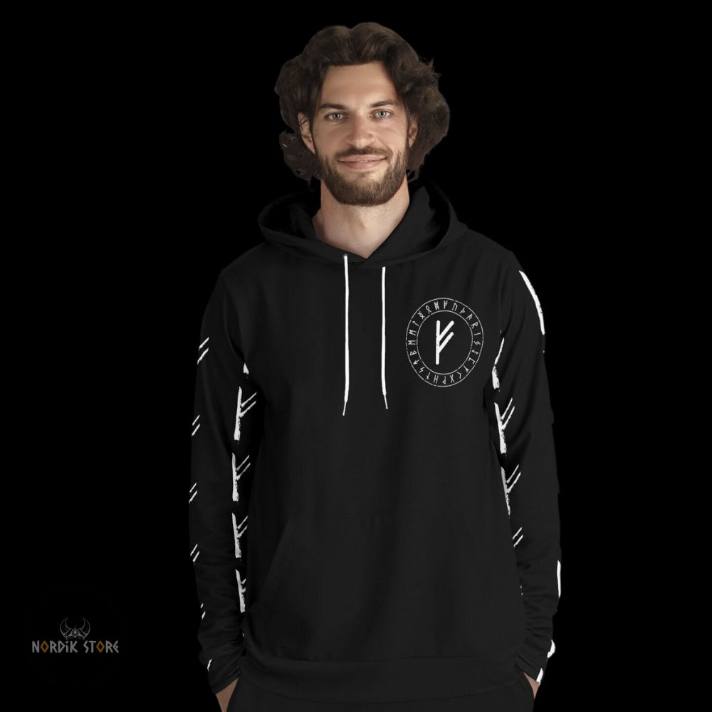 Découvrez le hoodie viking runes de Prospérité : la puissance de Fehu à portée d’épaule