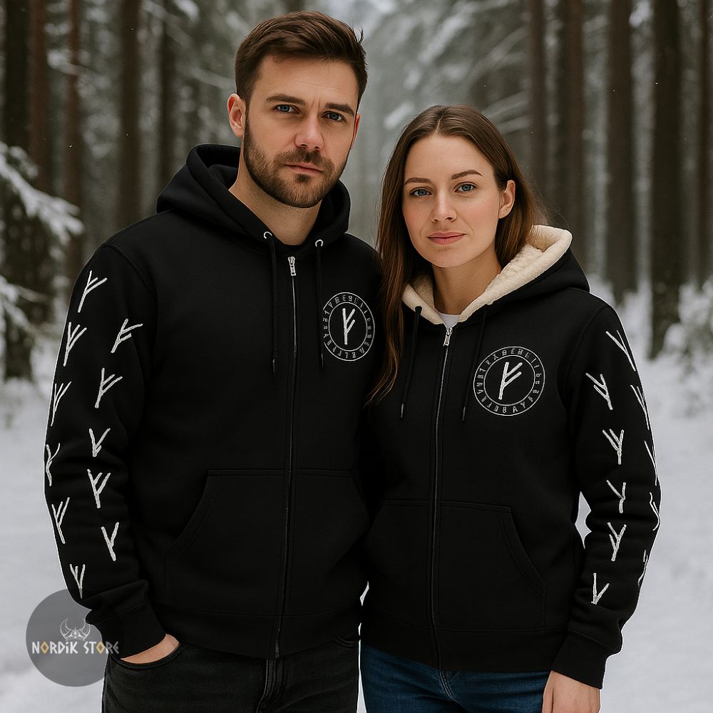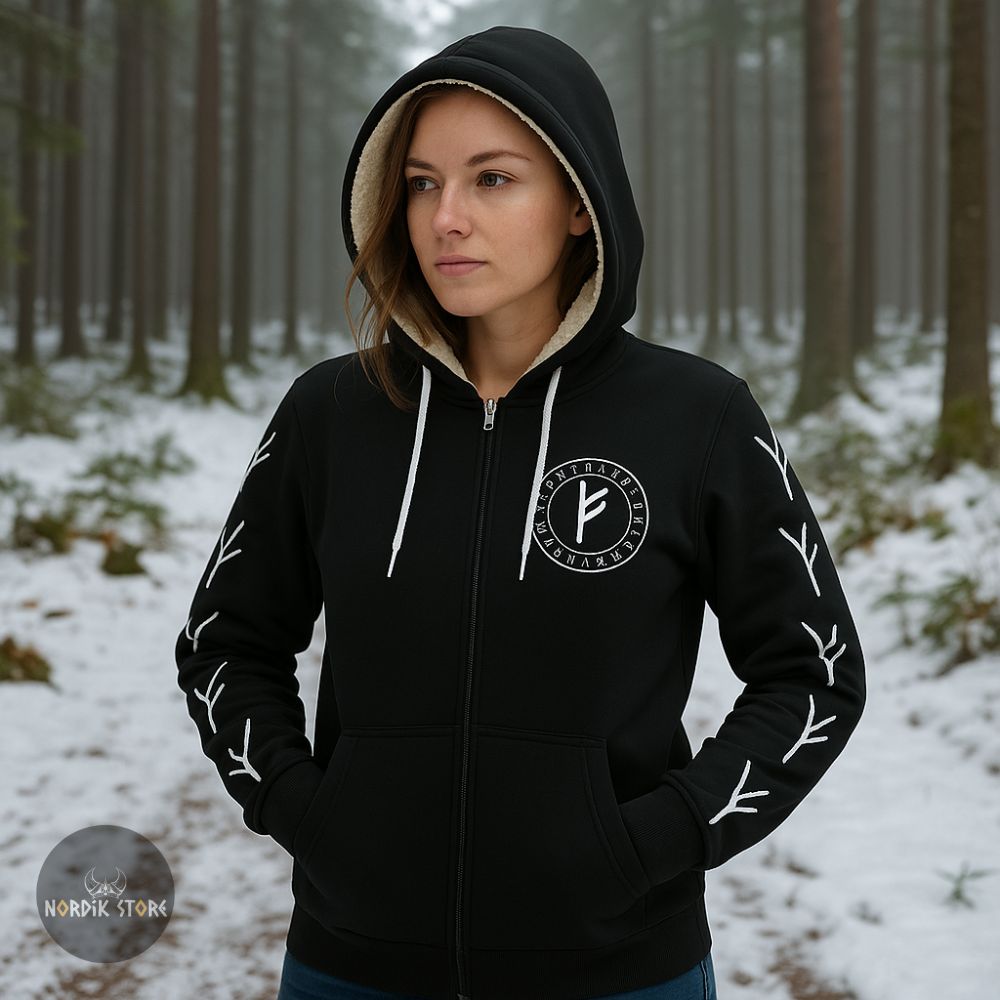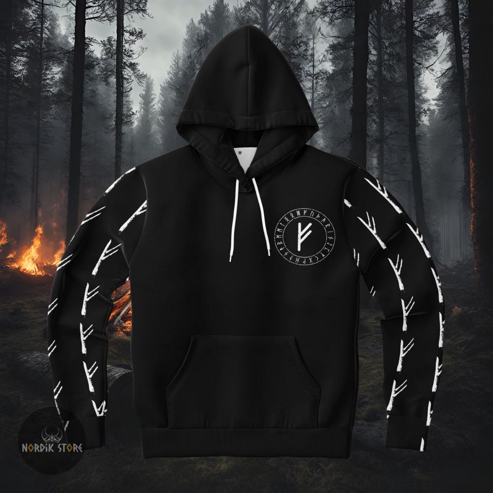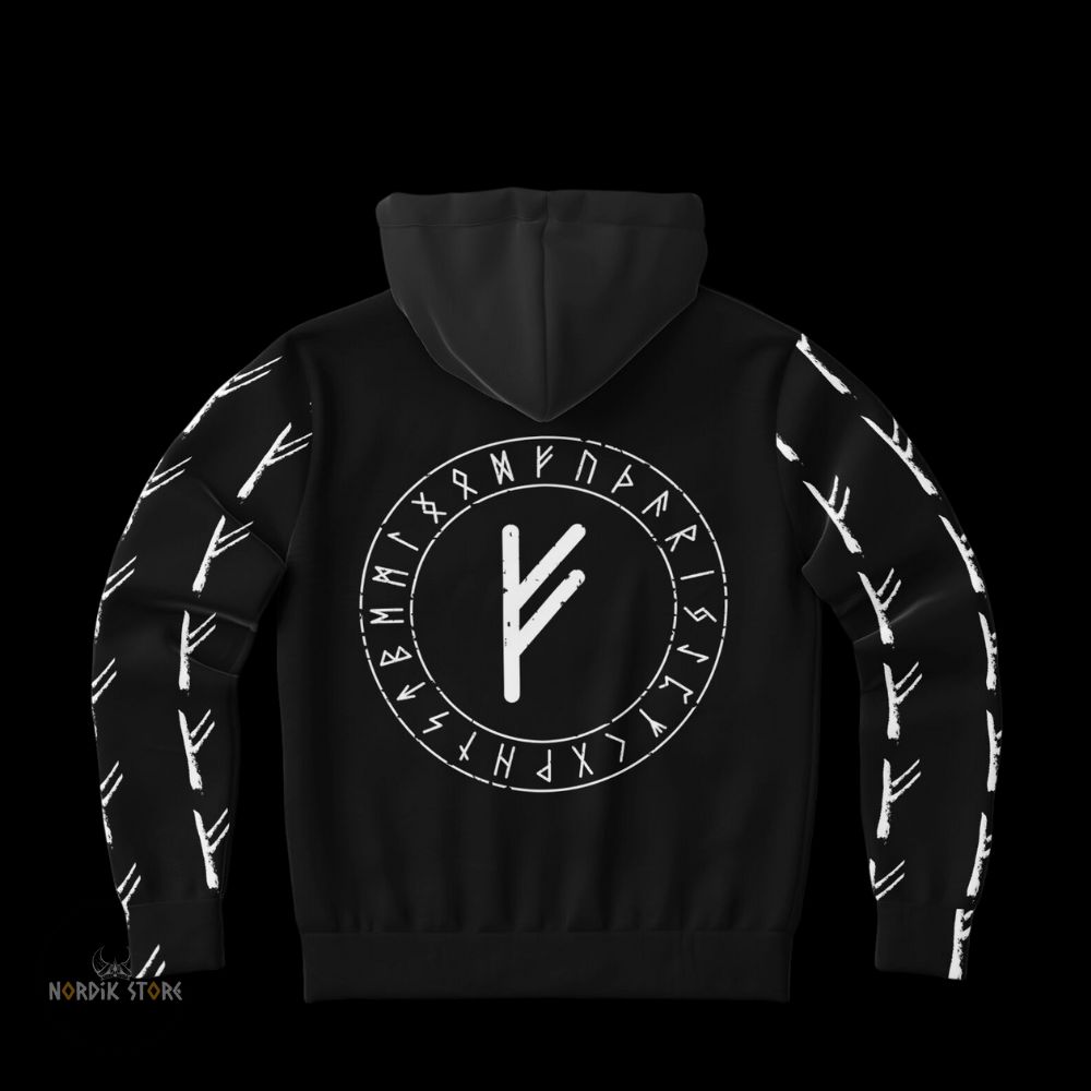 Découvrez le hoodie viking runes de Prospérité : la puissance de Fehu à portée d’épaule