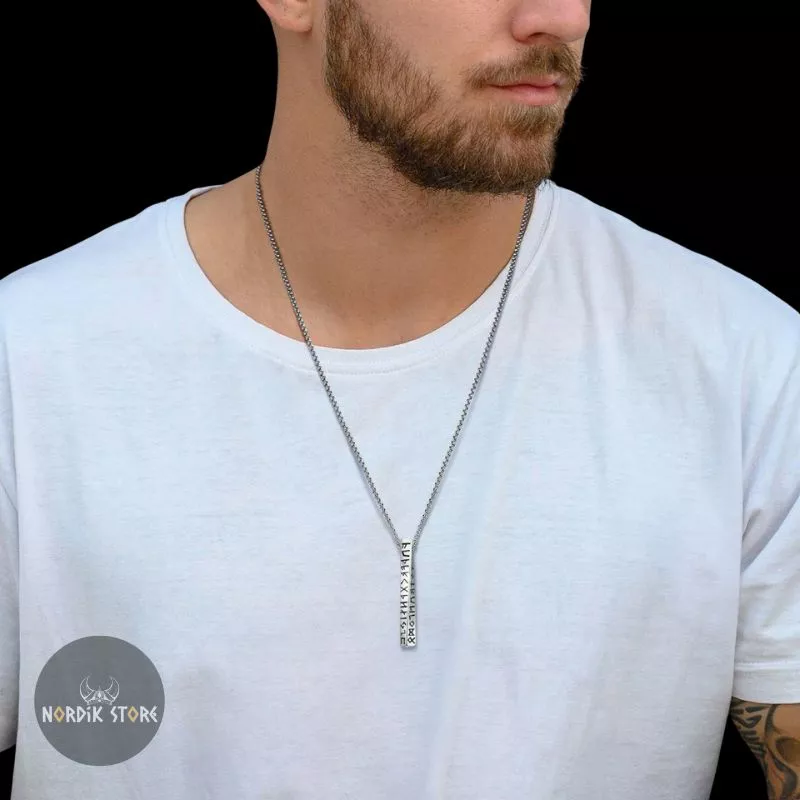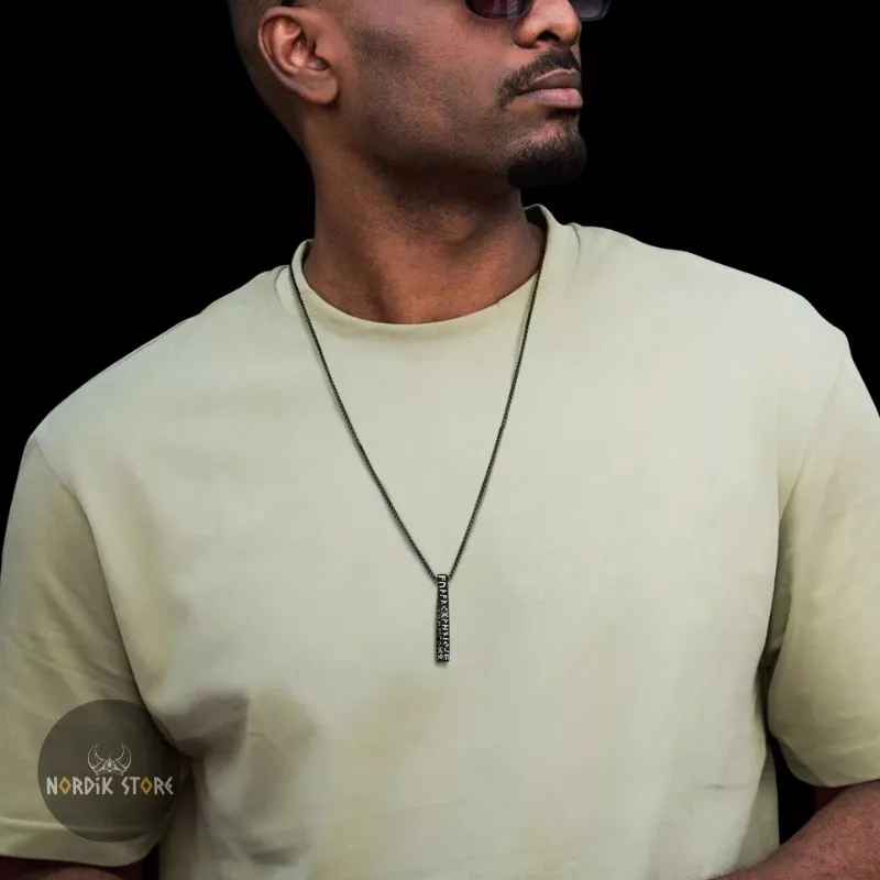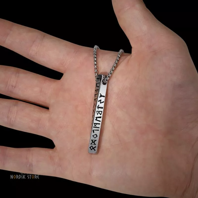 Le pendentif viking Pilier des 24 Runes est fabriqué en acier inoxydable résistant, pour un usage quotidien sans crainte.