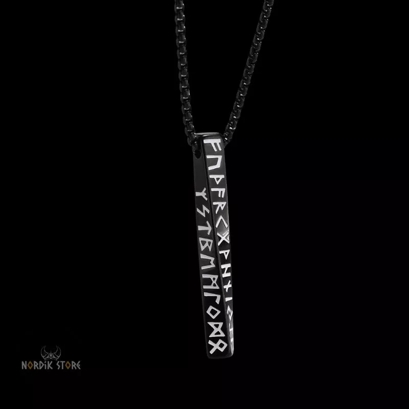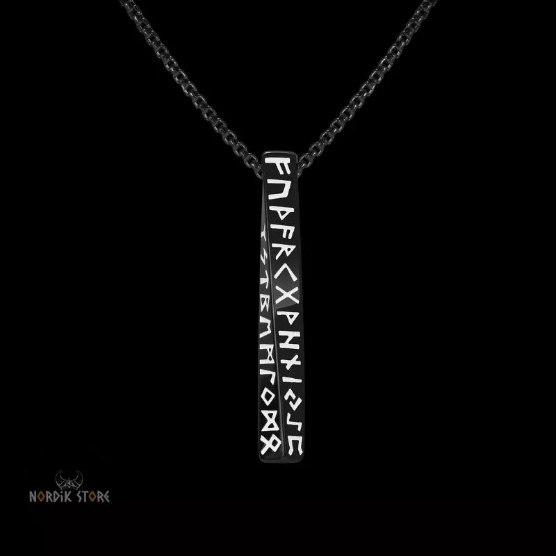 - Pendentif Viking Pilier des 24 Runes gravé du Futhark complet.