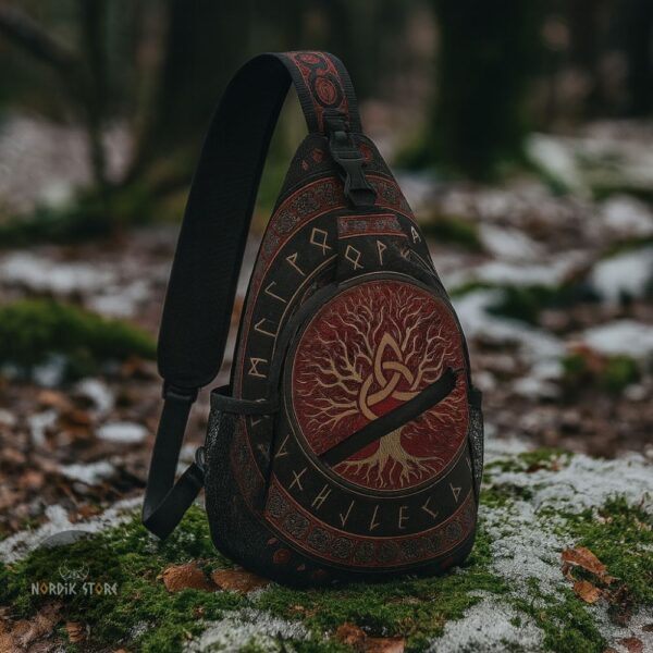 Découvrez le sac viking Triskel ardent, un accessoire qui semble avoir été façonné dans la braise d’un ancien foyer sacré où les guerriers gravaient leurs symboles avant la nuit. Imaginez un voyageur traversant les landes battues par le vent, portant un sac marqué d’un Triskel flamboyant comme une étincelle venue d’un autre âge. Grâce à son motif rouge incandescent, il dégage cette énergie farouche que les Celtes associaient au mouvement éternel, à la force intérieure et aux cycles sacrés.