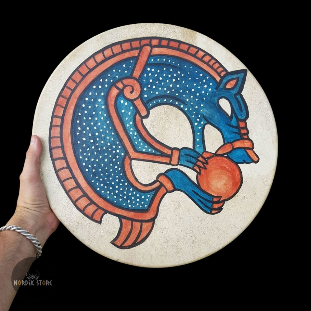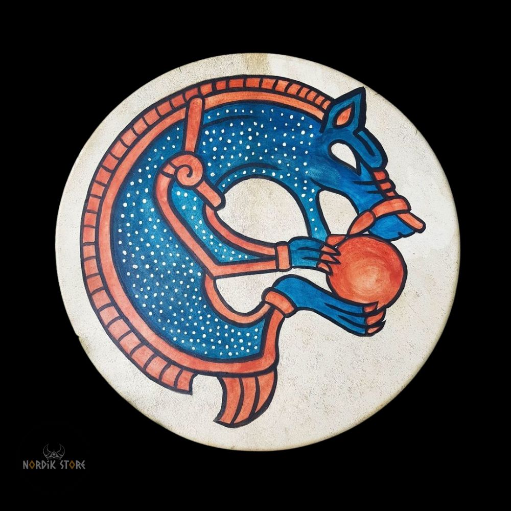 Découvrez un tambour chamanique viking Sköll, porteur de la fureur lunaire